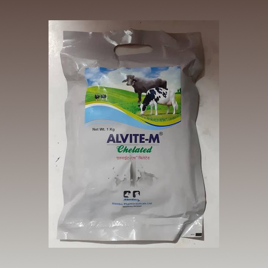 ALVITE-M CHELATED is a scientifically formulated vitamin and mineral supplement designed to meet the essential nutritional needs of livestock. Enriched with chelated minerals and vital vitamins, it ensures optimal growth, improved fertility, enhanced immunity, and better reproductive performance in dairy animals.