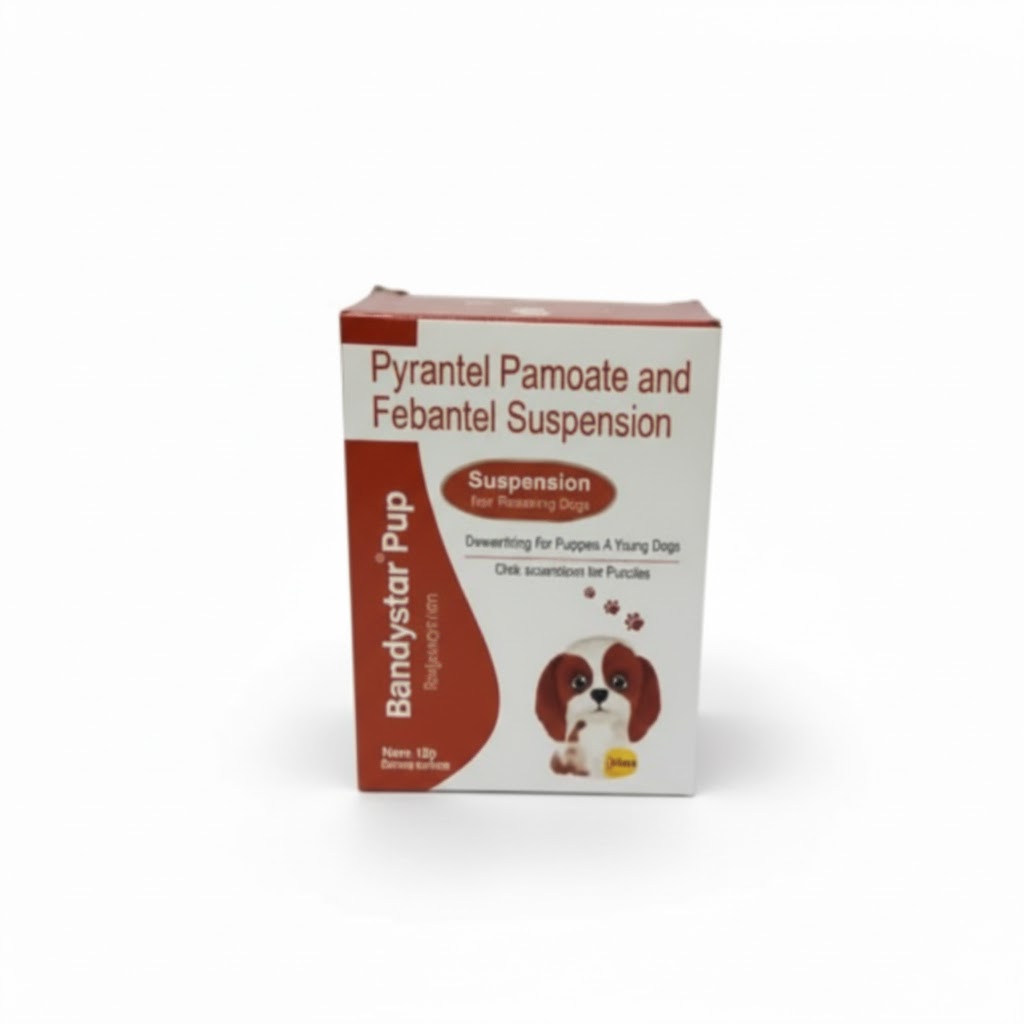 Bandystar Pup suspension has two ingredients. Pyrantel pamoate is active against hookworms and roundworms. Febantel has a synergistic effect with pyrantel pamoate. Peristalsis movement of the intestine helps in the elimination of the paralyzed worms from the gut. It is a regular dewormer for puppies and young dogs.