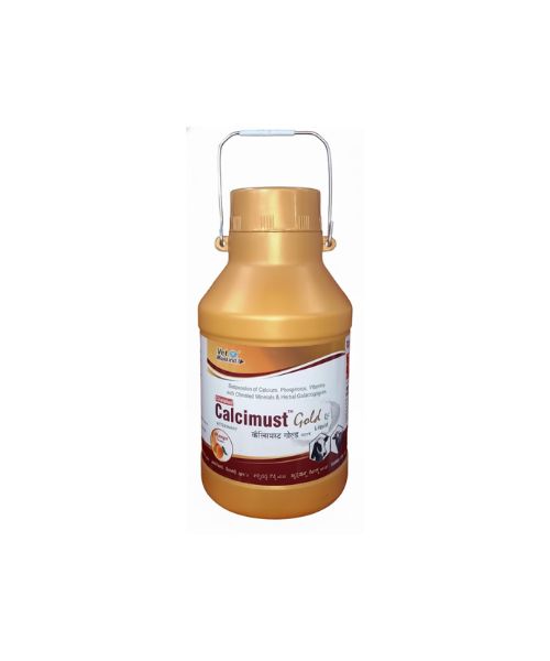• During the prime 4 months of lactation, when dairy animals face high demands, Calcimust Gold RF serves as a premium calcium supplement to meet these requirements effectively. Its formulation is tailored to support peak milk yield, maintain uterine health, and fortify the keratin layer during this crucial period.Composition and Roles: