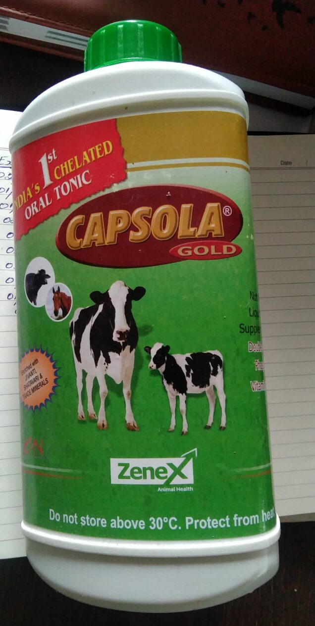 Introducing CAPSOLA GOLD, the ultimate oral tonic designed to optimize milk yield and ensure superior udder health in dairy animals. Enriched with a potent blend of essential nutrients, including calcium, phosphorus, vitamins, and minerals, along with beneficial herbs like shatavari and jivanti, CAPSOLA GOLD promotes higher milk production, enhances udder immunity, and facilitates rapid milk letdown.