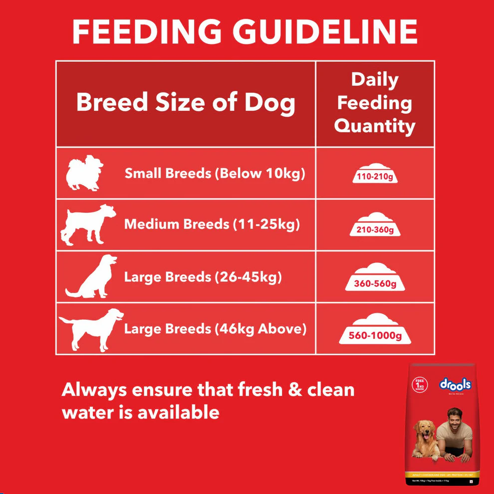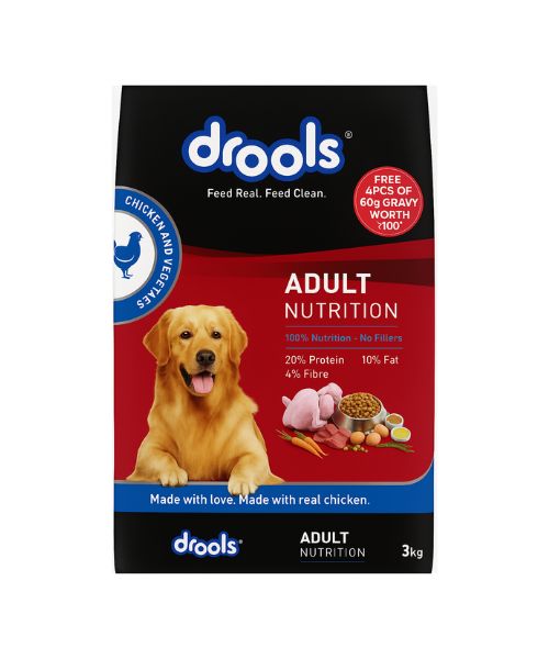 - Choose Drools Chicken and vegetable Adult Dry Dog Food for a wholesome and protein-rich diet tailored to meet your dog’s nutritional needs.