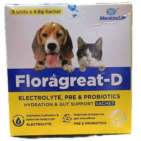 A probiotic and electrolyte supplement that supports gut health, immunity, and hydration in pets.