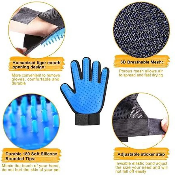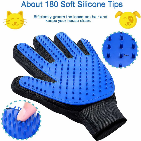 - Upgrade Version: With enhanced 255 silicone grooming tips, mimics the touch of your hand for a soft and relaxing massage; This flexible, slip-on grooming gloves allow you to brush away dirt, dander and loose hair from cats and dogs