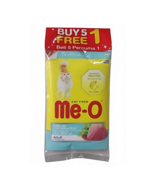 Meo Tuna With Chicken In Jelly Adult 80gm (Buy 5 Get 1 Free)