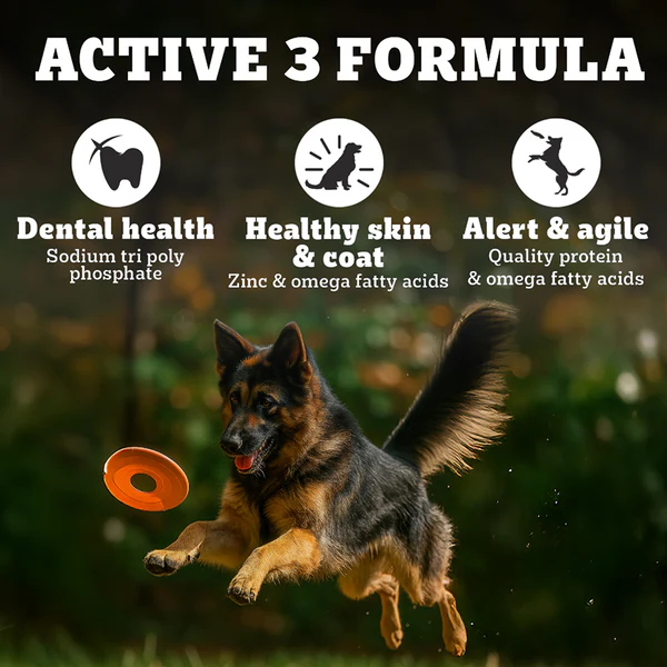 Dental Health: Crunchy kibble helps reduce tartar buildup and promotes oral health.