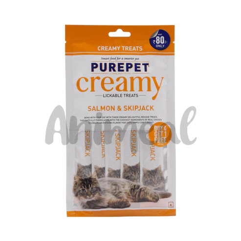Purepet Creamy Treats Salmon and Skipjack 75gm (Buy 4 Get 1 Free)