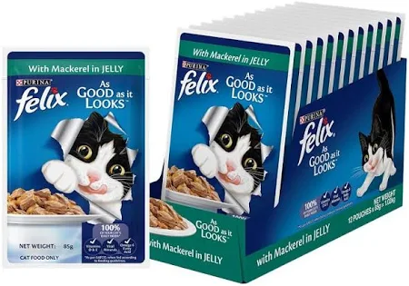 Purina Felix Mackeral with Jelly Adult Cat Wet Food 85gm (Pack of 12)
