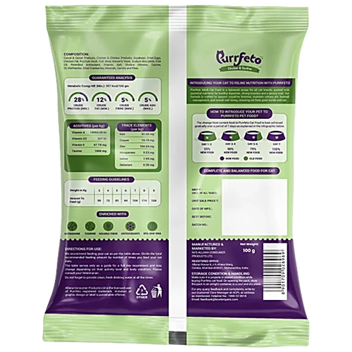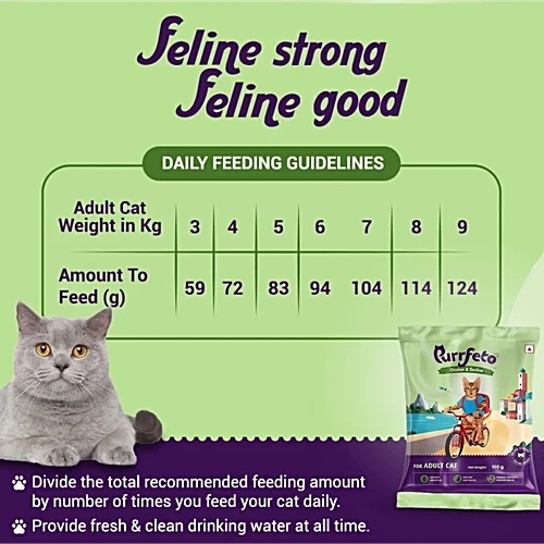- We recommend feeding your cat as per the feeding guidelines given in the image and the product packaging.