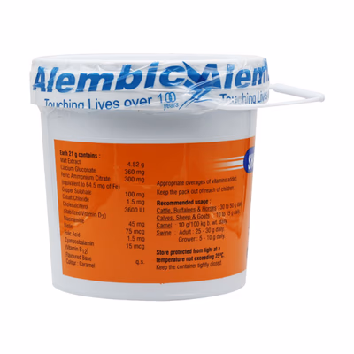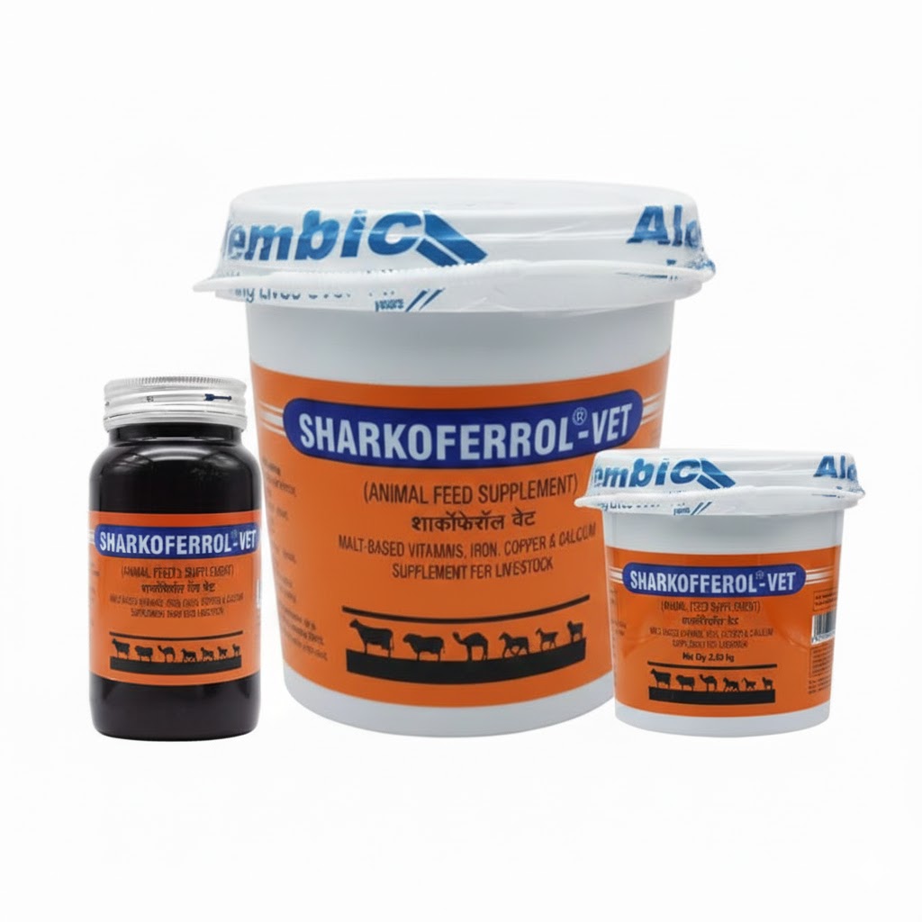 Sharkoferrol vet is a premium hematinic and multivitamin supplement designed to support red blood cell production, immunity, and overall vitality in pets and livestock. Formulated with iron, calcium, B-complex vitamins, and essential minerals, it effectively treats anaemia, fatigue, and nutritional deficiencies. Ideal for recovery after illness or surgery, it promotes healthy growth, appetite, and neurological development. Sharkoferrol vet features a scientifically balanced blend of iron, copper, cobalt, folic acid, and vitamin B12 to enhance haemoglobin synthesis and oxygen transport. Fortified with malt extract and a palatable chocolate-pineapple flavour, it improves feed intake and energy levels. Suitable for cattle, buffaloes, horses, goats, sheep, it’s a trusted choice for comprehensive animal care.