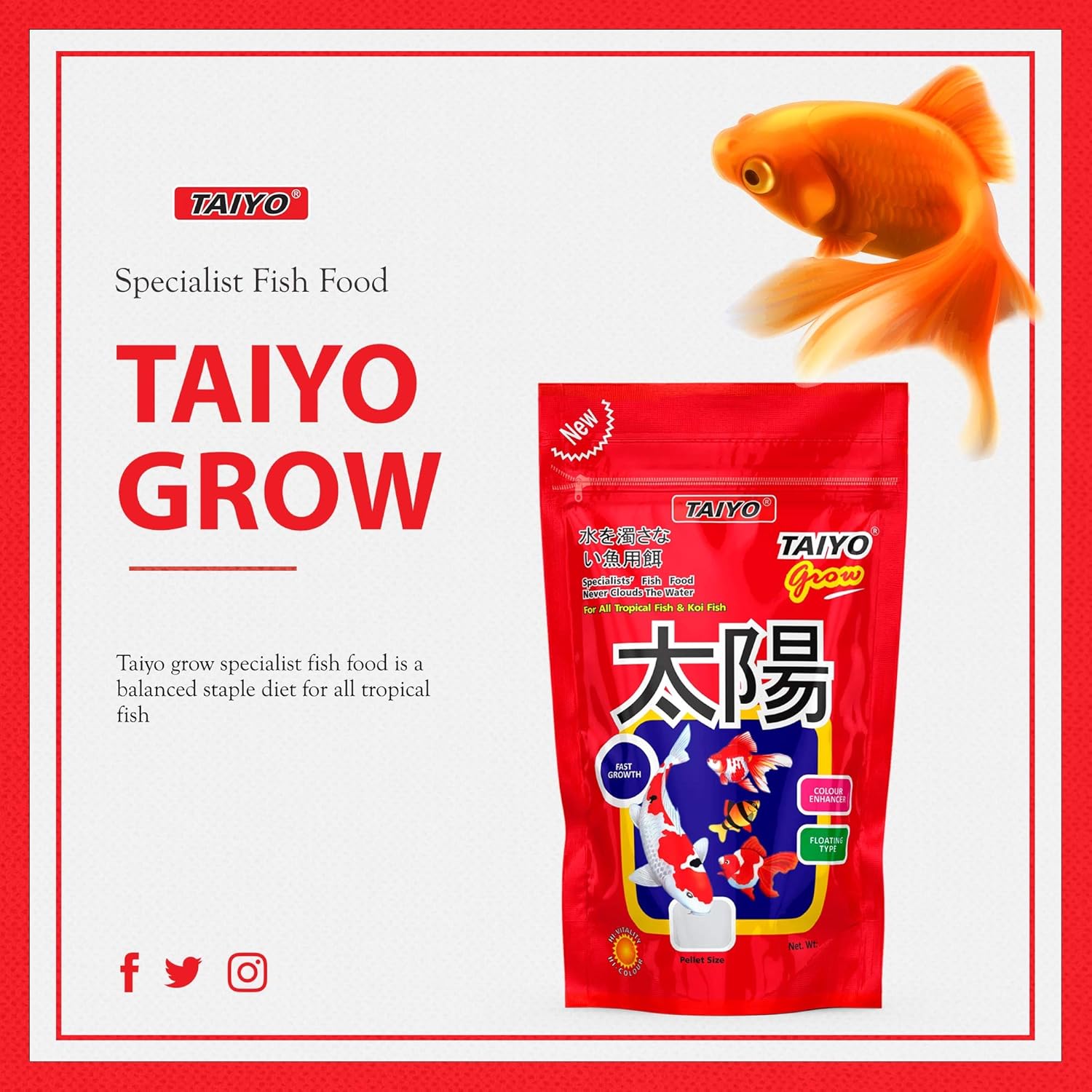 - Taiyo grow specialist fish food is a balanced staple diet for all tropical fish