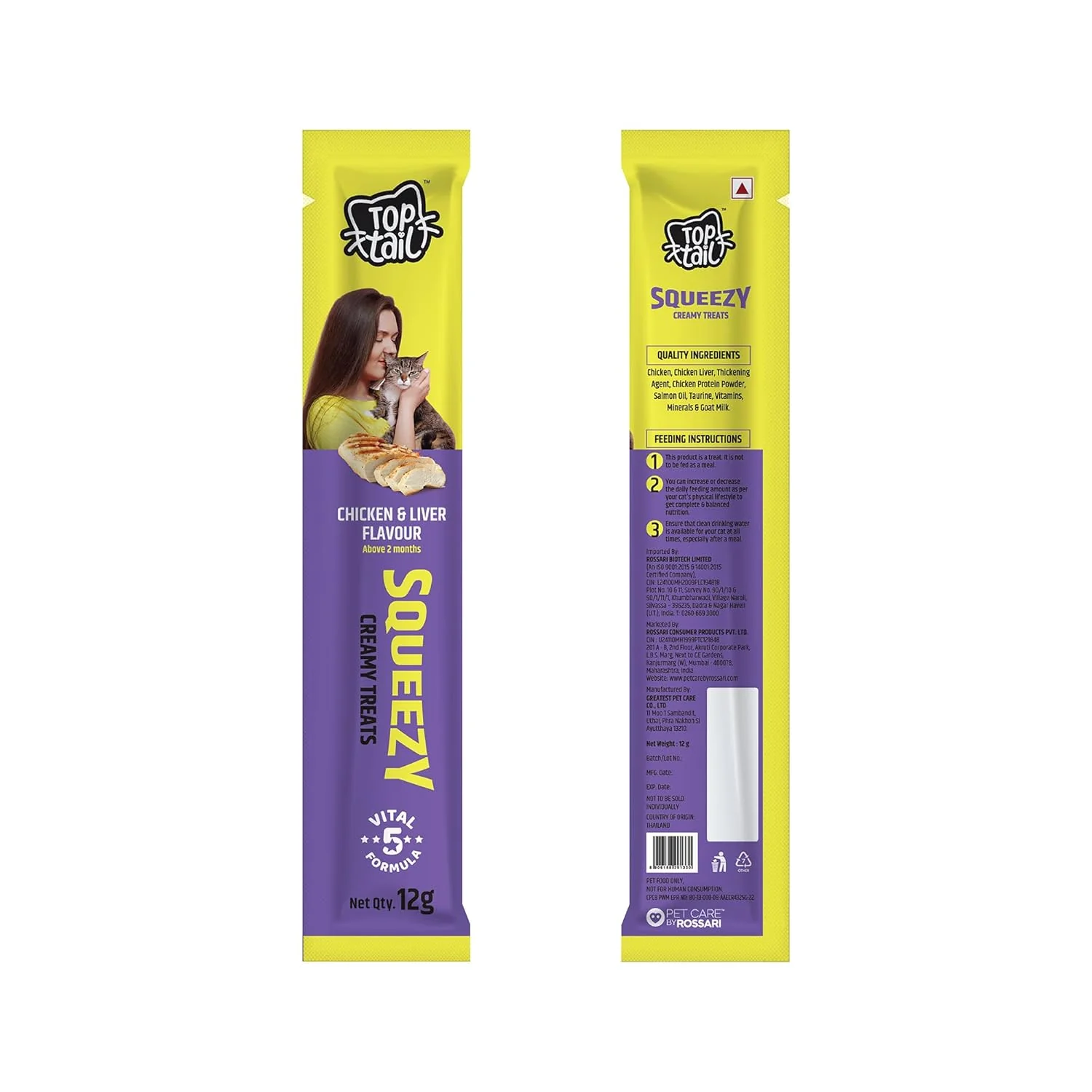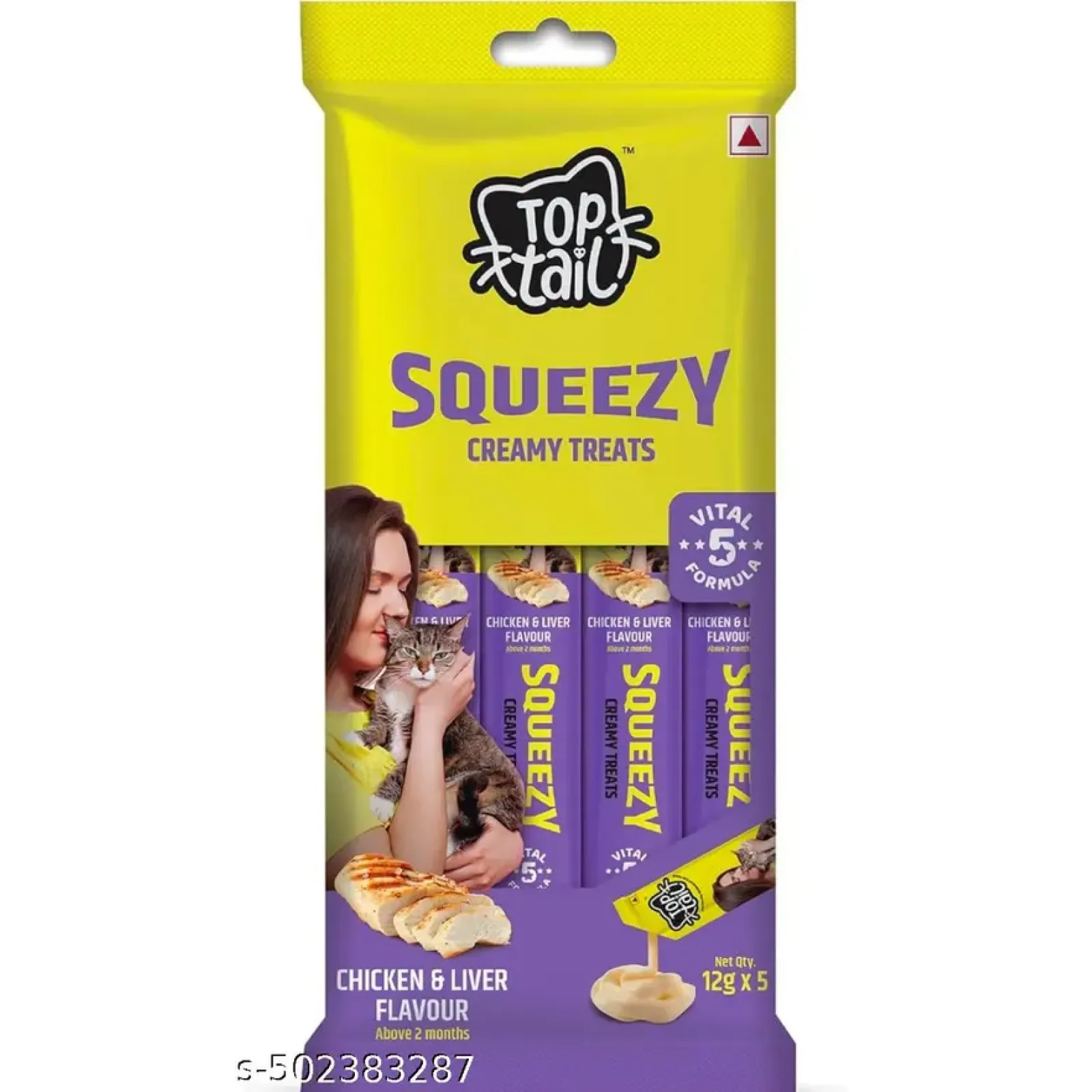 Top Tail Squeezy Creamy Treats Chicken And Liver Flavour 12gm (pack of 5)