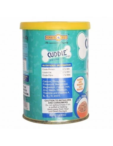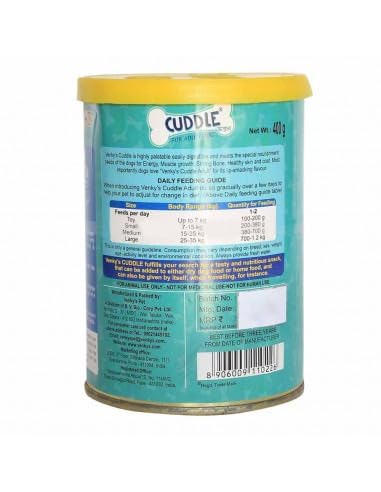 Venky’s Cuddle Wet Adult Food is a wet dog food that is easy to digest and palatable. It is designed to meet a dog’s nutritional needs and promote strong bones, healthy skin and coat, muscle growth, and energy. Healthy treat a complete wet food. Recovery diet to maintain healthy digestive system. Easiliy digestive protein to maintain proper growth of muscle, bone & joints. Nutrition of shiny skin and silky hair & skin coat.