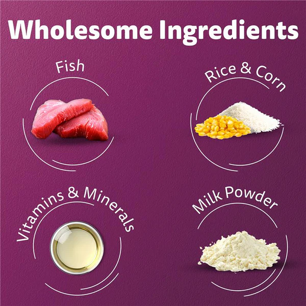 - Healthy Benefits: Enriched with DHA for eye and brain development, and fortified with calcium, phosphorus, and Vitamin D for healthy growth, strong teeth, and bones. Omega-6 fatty acids and zinc contribute to a lustrous coat.